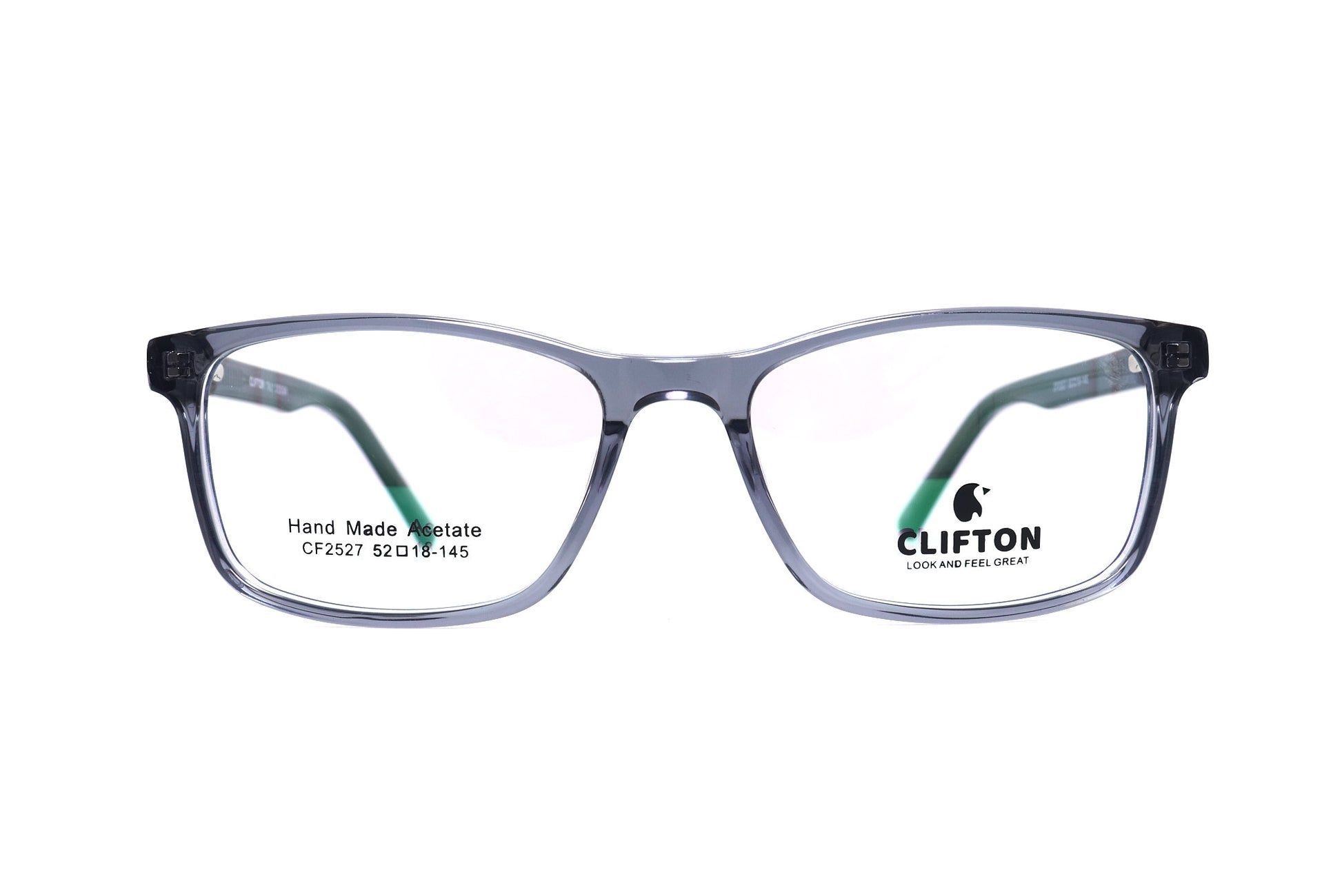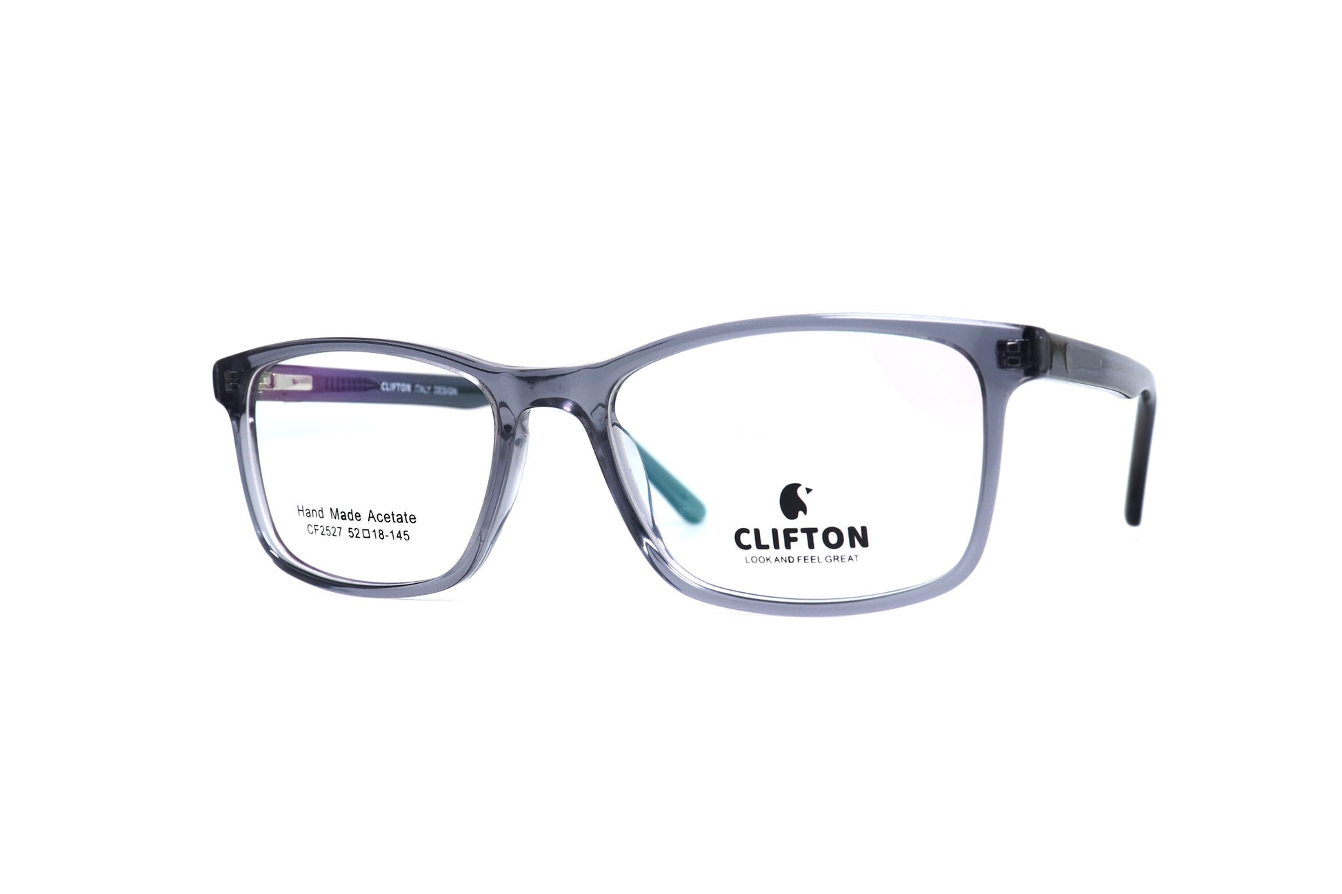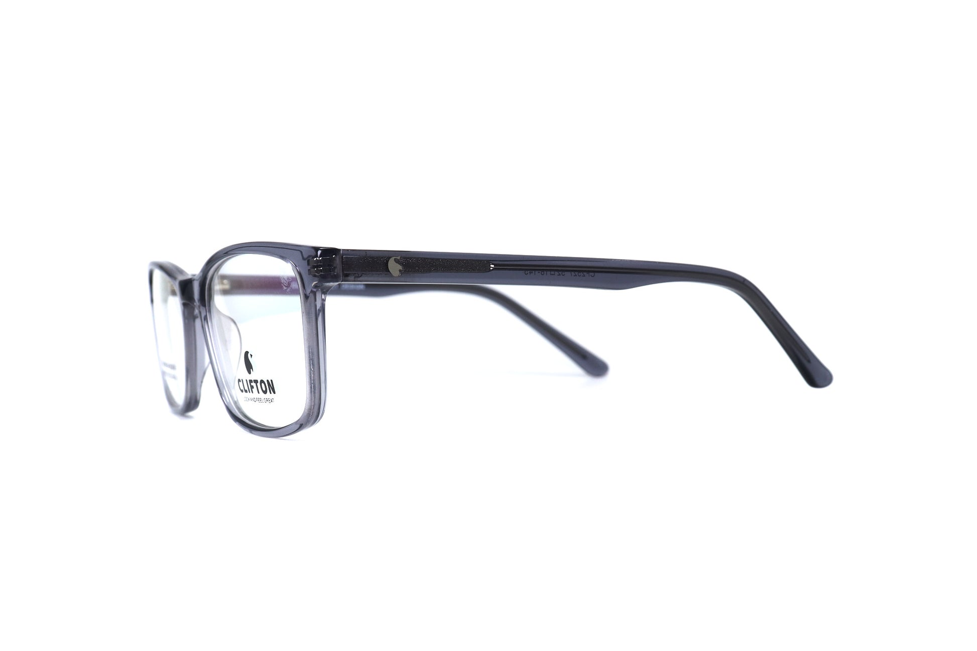 Diseño moderno de forma cuadrada, elaborada en acetato resistente y ligero. Su color gris translúcido le da un toque elegante y versátil para cualquier estilo.